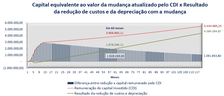 Demonstramos no gráfico a seguir o comportamento dos custos e do efeito de sua redução após a aplicação do Programa de Redução de Custos, já contemplando a remuneração da Action.